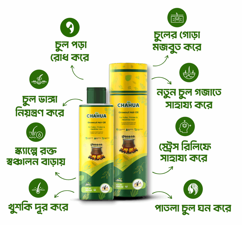 নিয়মিত ব্যবহারে চাহুয়া হেয়ার গ্রোথ অয়েল খুশকি সহ স্ক্যাল্পের বিভিন্ন সমস্যা দূর করে।