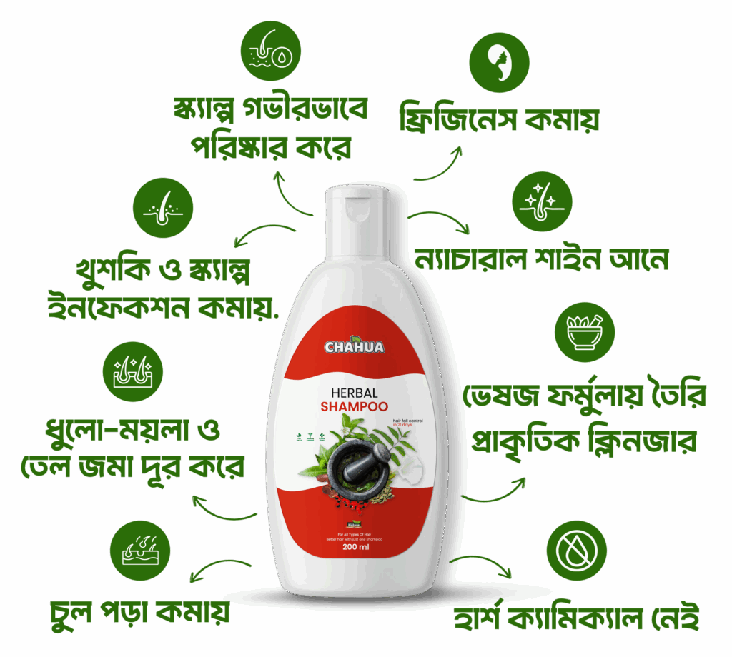 চাহুয়া হারবাল শ্যাম্পু একটি ভেষজ ও পুষ্টিকর চুলের শ্যাম্পু, যা প্রাকৃতিক উপাদান ও আধুনিক হারবাল ফর্মুলার সমন্বয়ে তৈরি। এতে রয়েছে পেঁয়াজ বীজ নির্যাস, গম ও সয় অ্যামিনো অ্যাসিড, ডি-প্যানথেনল, গ্লিসারিনসহ প্রয়োজনীয় হারবাল উপাদান যা চুল পড়া রোধ করে, চুলের গোড়া মজবুত করে এবং চুলে আনে প্রাকৃতিক উজ্জ্বলতা। এটি স্ক্যাল্প গভীরভাবে পরিষ্কার করে, খুশকি ও ফ্রিজিনেস কমায়, ধুলো-ময়লা ও তেল জমা দূর করে এবং চুলকে করে নরম, মসৃণ ও সতেজ। চাহুয়া হারবাল শ্যাম্পু সম্পূর্ণভাবে হার্শ কেমিক্যালমুক্ত ও সব ধরনের চুলের জন্য উপযোগী।
