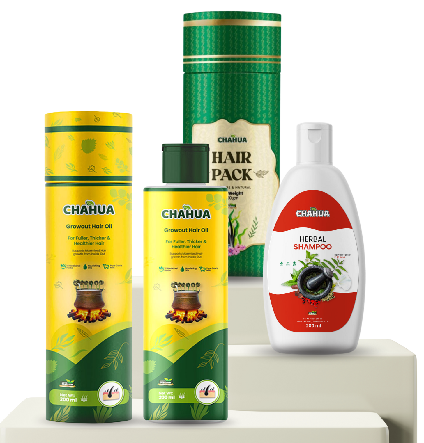 চাহুয়া হেয়ার গ্রোথ অয়েল তৈরি হয়েছে ৫ ধরনের হারবাল অয়েল ও ২১টি প্রাকৃতিক উপাদানে, যেগুলো ৫০০০ বছরের পুরোনো ক্ষীরপাক পদ্ধতিতে প্রস্তুত করা হয়। মূল উপাদানগুলোর মধ্যে রয়েছে—ভৃঙ্গরাজ, মান্ডুকা পানি, জাতি, গুঞ্জা, সুধা ধাতুরা, ইলাইচি, নিলি, ইন্দ্রবারুনী, জটামানসি, করঞ্জ, নিম, মেহেদী, ত্রিফলা, যষ্টিমধু, ভাচা, রাসোট, মন্দুর ভস্ম এবং তিল, নারকেল, নিম্বুক ও নীলিব্রিং তেল।